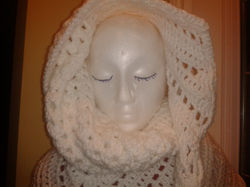![]() Chains crochet scarf/wrap-$40.00Gorgeous piece! Can be made in a variety of different colors. | ![]() Cute lattice scarf-$30.00Made with beautiful bernat mosaic yarn. Can be made in a variety of different colors and yarns. | ![]() Gorgeous crochet capelet/scarf-$70Made of silk bamboo thread, this gorgeous capelet rests beautifully over your shoudlers, or can be worn as a scarf. When laid flat has the shape of a crescent moon. Can be made in a variety of different silk threads and colors. |
